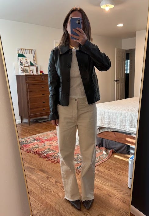 about making 18 outfits with 1 jacket!!A practice I’m forcing on myself so far in 2025. Once I buy something, I try to wear it 3-5 times in the first few weeks after it arrives. Honestly, each item you buy should feel exciting and make you want to wear it. In a perfect world, new items unlock new parts of your wardrobe. If you don’t feel excited to rewear it right away, well, then it’s probably not a keeper.