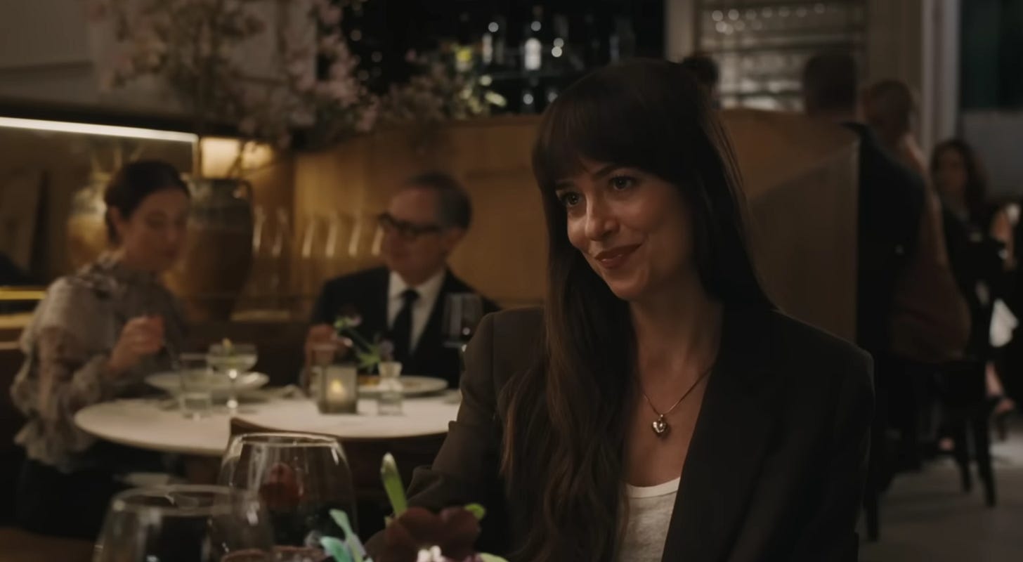 Has anyone else watched the trailer for the upcoming movie starring Dakota Johnson called Materialists? The trailer hit my millennial nostalgia because it felt 2000s rom-com. But Dakota’s costumes in the trailer had me excited and I predict we will be fawning over them like Nobody Wants This.