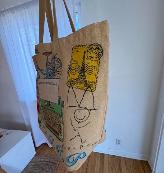 ok the hand drawn bode-inspired tote is gorgeous. new level of personalization = unlocked !! such a cool idea. also love the brain dump format of this letter. 🧠 ✨