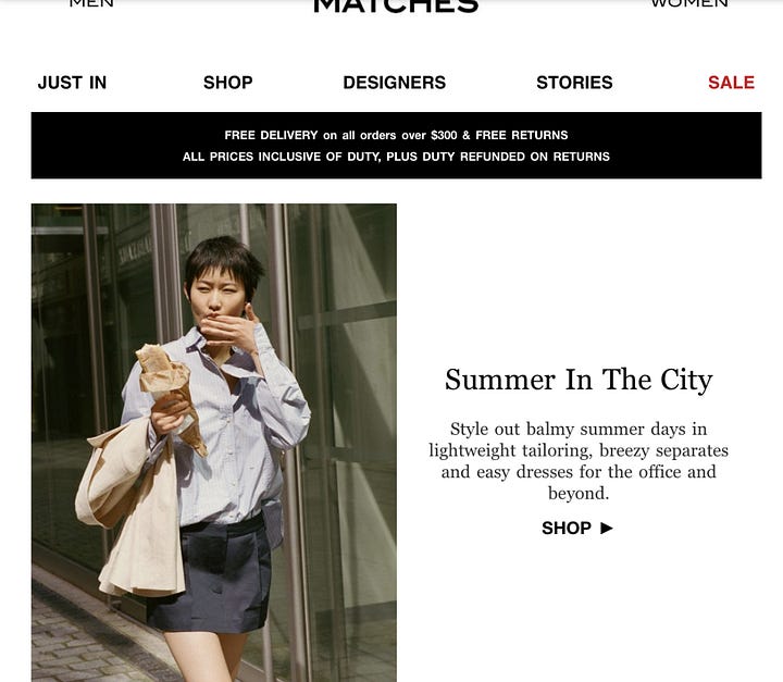 I took a screenshot of a recent Matches email because this Tibi skirt paired with an oversized button down is peak cool. I found two lovely oversized button downs that are on my shopping radar.