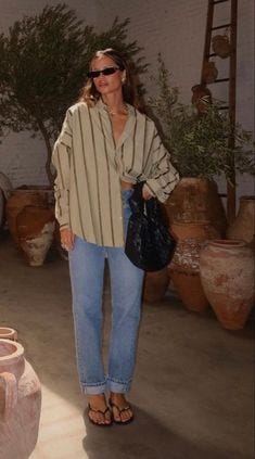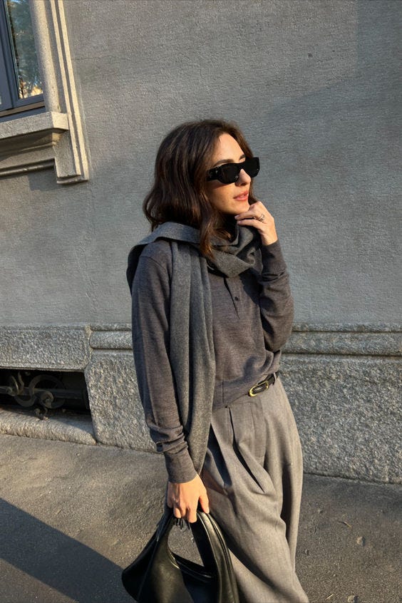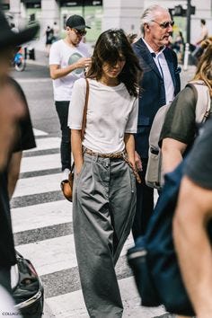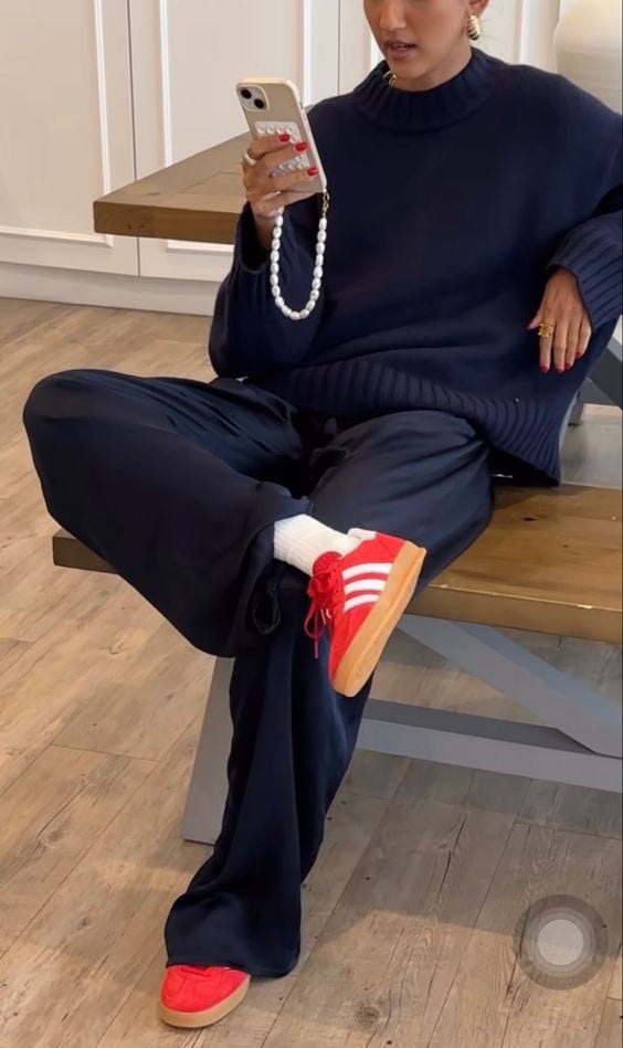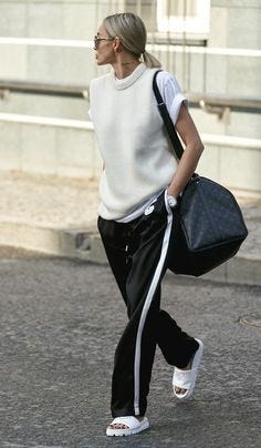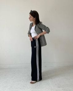 I admit that I have logged off of TikTok for the time being so you won’t see any video links from there for now but I had bookmarked this one that I saw a few weeks ago as a great idea for bringing a fresh idea to your wardrobe. oklaurizzle does a great job of explaining the concept of high-contrast outfits but the idea is combining pieces that you normally wouldn’t. This feels similar to a vibe-sandwich because the best way to create contrast (as you’ll see in the video) is sporty with girlie, but I pulled my favorite inspirational pictures I found I was most drawn to button down shirts layered with track pants so maybe start there? Or tell me how you like to create contrast!