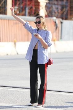 Remember last time when I charged you with grabbing your trusty button down to play with layering; go get that same button down for this one too (see, we are using what we already have!). If you can’t stand it, go get a button down cardigan instead. Now scroll the below ideas for how you can button your shirt in different ways to create different effects. I did my very best to find an image of Amy Smilovic’s button down hack and couldn’t but she will take the very bottom buttons and button it behind her back so her shirt creates a shrug; VERY cool. If you grab a cardigan try buttoning it up backward.